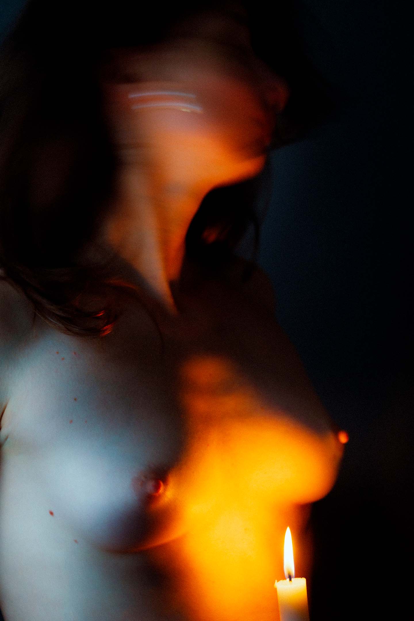 Both of us were going through a kind of creative crisis and decided to have a shoot together to inspire each others creativity and to have a good time. We literally enlightened a candle in the dark, which was our only source of light and is also a wonderful metaphor to what some people can be to others.